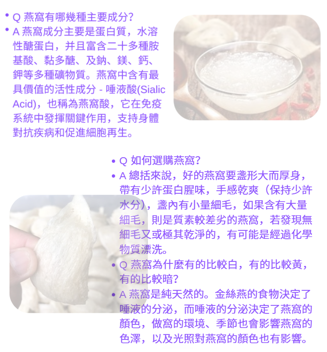 紋理清晰、色澤天然,適合自用,營養跟燕盞沒大分別